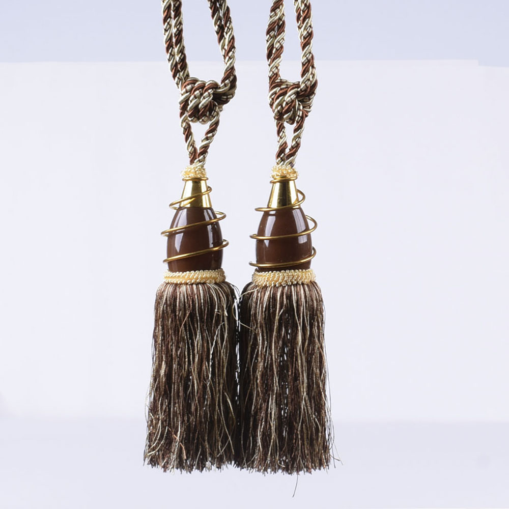 Кисти подхваты для штор верх со спиралью золотистой 2 кисти 27 см коричневые купить в розницу и оптом