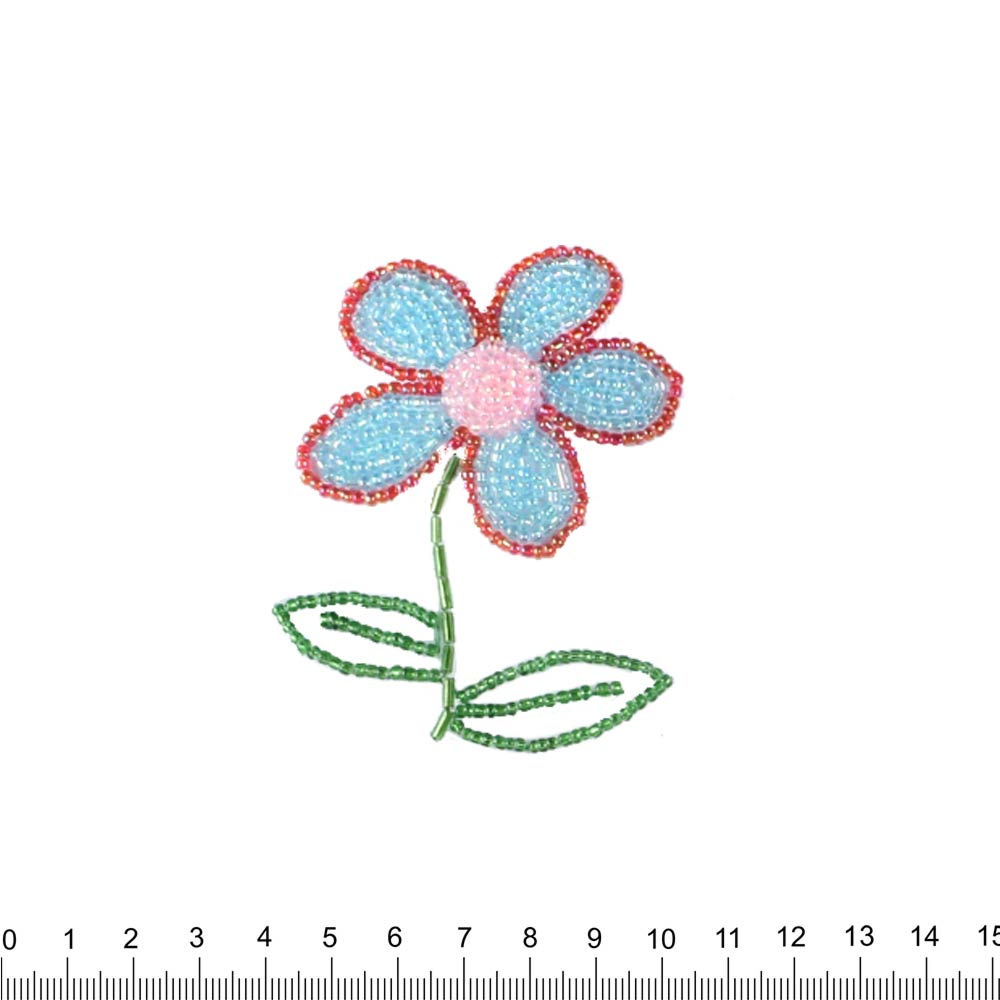 Нашивка с бисером Цветок 50х90мм красно-голубой купить в розницу и оптом
