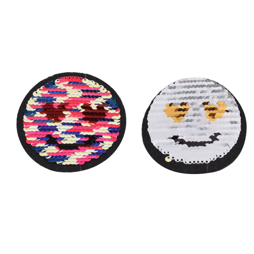 Термоаппликация Пайетки смайлик 70х70мм серебро/разноцветный. Страна производитель: Китай.