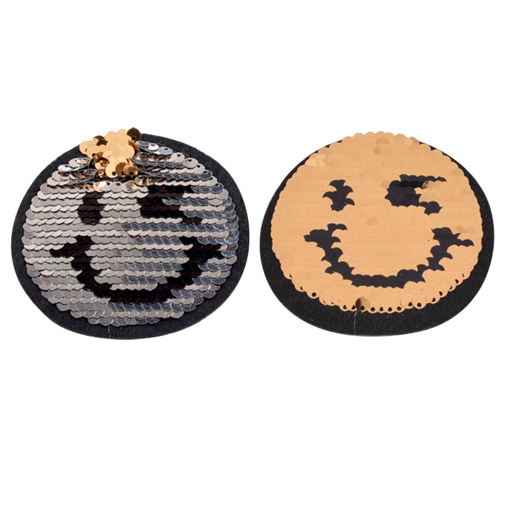 Термоаппликация Пайетки смайлик 70х70мм серебро/золото. Страна производитель: Китай.