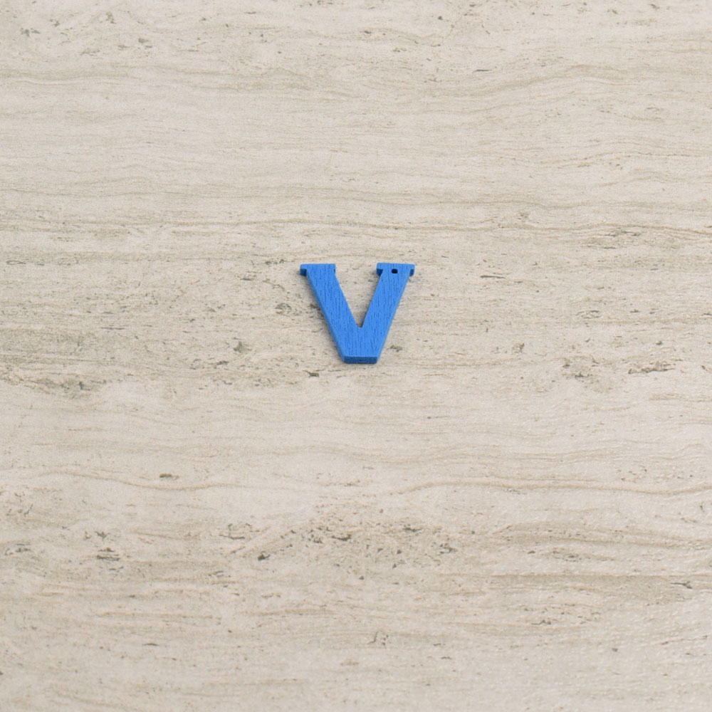 Пришивной декор буква V синяя, 25мм купить в розницу и оптом