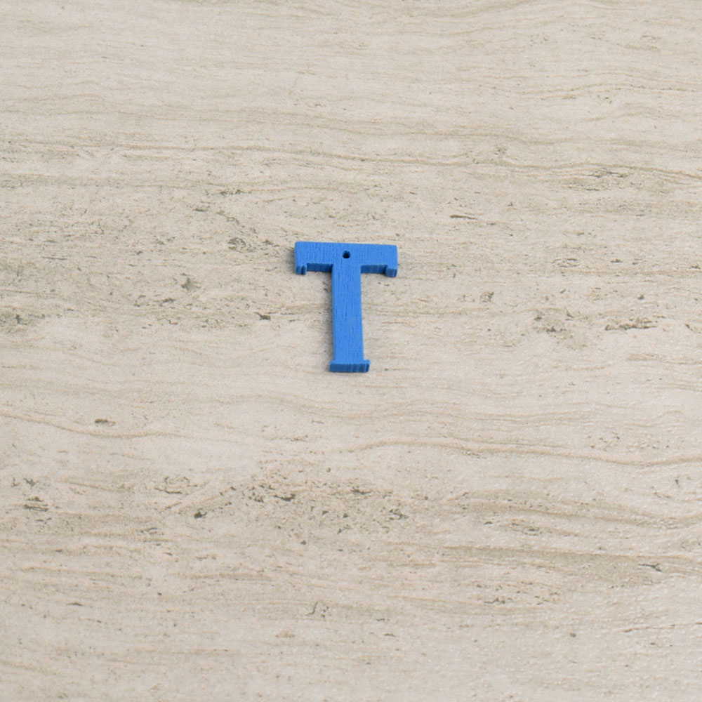 Пришивной декор буква T синяя, 25мм купить в розницу и оптом