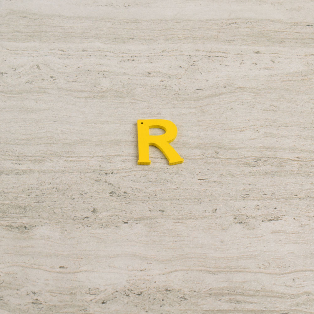Пришивной декор буква R желтая, 25мм купить в розницу и оптом