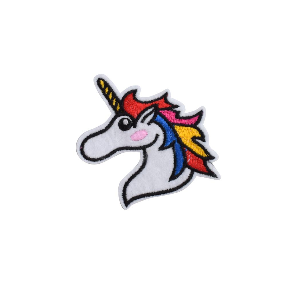 Термоаппликация Единорог с гривой красно-желтой 60х70мм купить в розницу и оптом