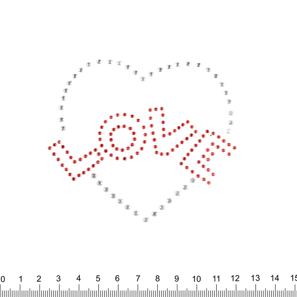 Термоапликация стразы металл Сердце LOVE 90х100мм серебристо-красная. Страна производитель: Китай.