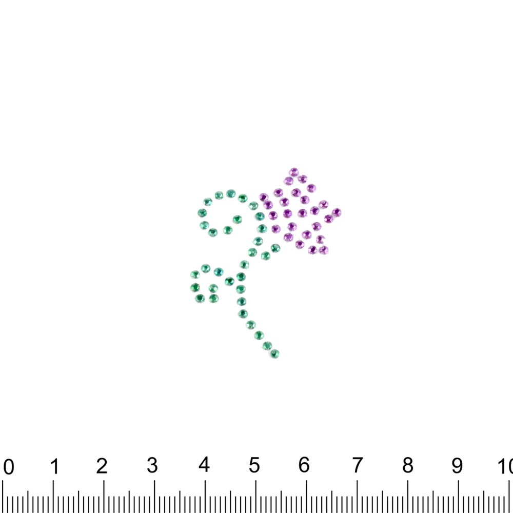 Термоапликация стразы металл Цветок 30х40мм фиолетово-зеленая купить в розницу и оптом
