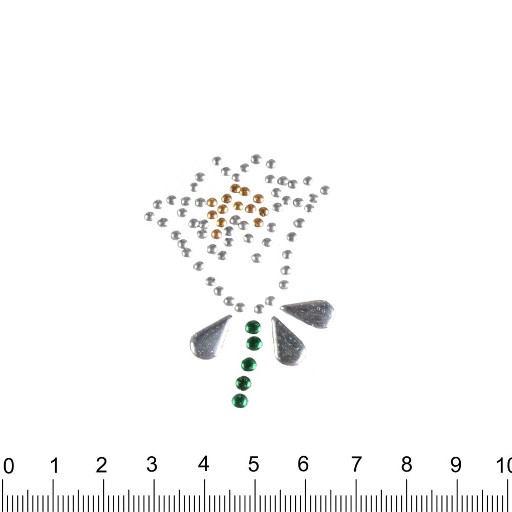 Термоапликация стразы металл Тюльпан 35х50мм серебристо-зеленая купить в розницу и оптом