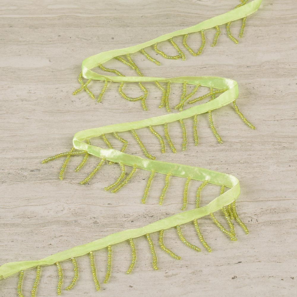 Бахрома бисерная на атласной ленте салатовая, салатовый бисер купить в розницу и оптом