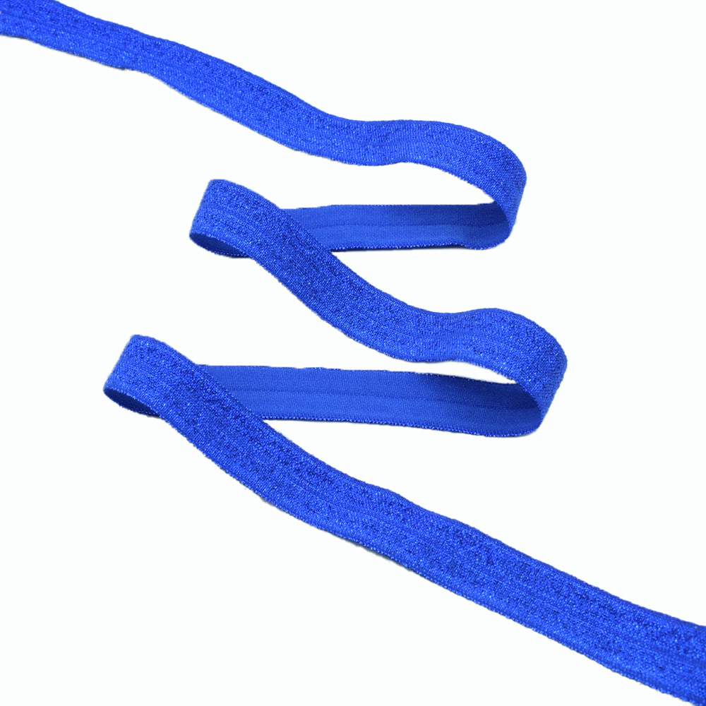 Косая бейка стрейч с люрексом 15 мм синяя купить в розницу и оптом