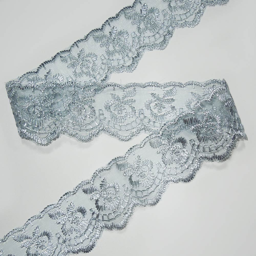 Кружево капрон 40мм серо-голубое купить в розницу и оптом