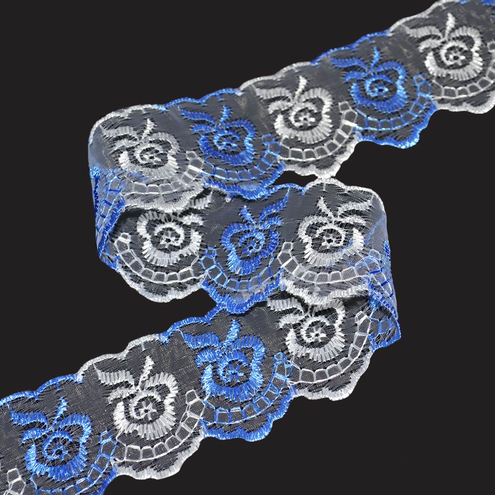 Кружево капрон двухцветное 40мм белое-синее купить в розницу и оптом
