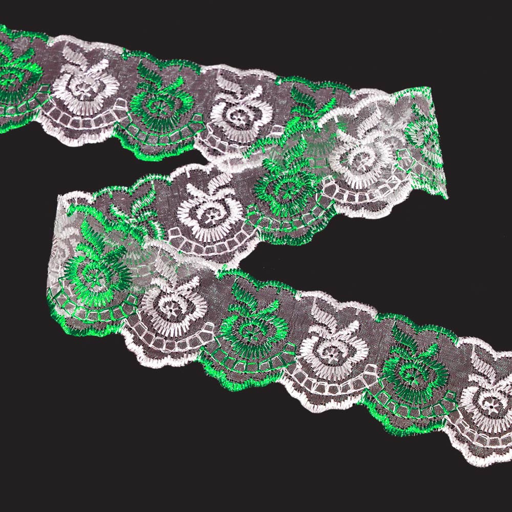 Кружево капрон двухцветное 40мм бирюзово-белое. Страна производитель: Китай.