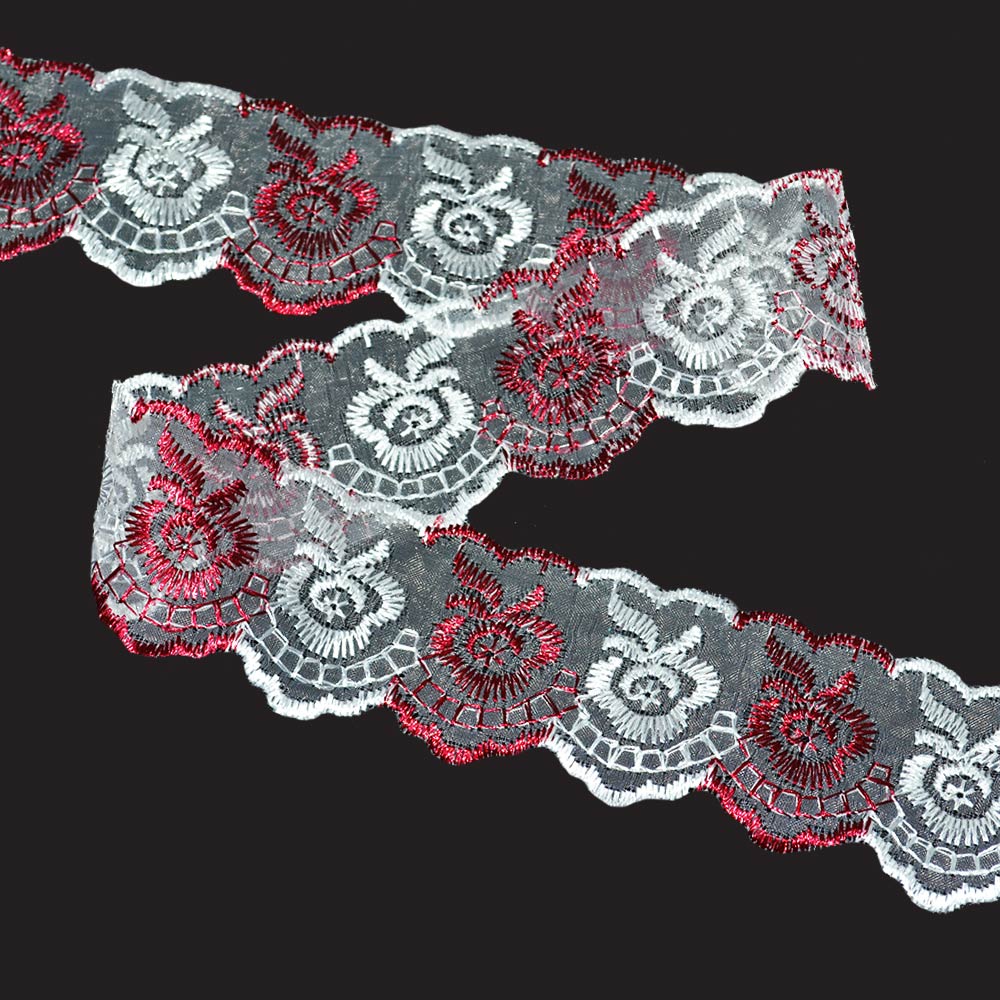 Кружево капрон двухцветное 40мм бордово-белое купить в розницу и оптом