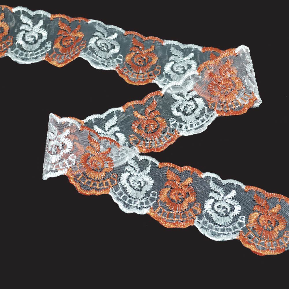 Кружево капрон двухцветное 40мм персиково-белое. Страна производитель: Китай.