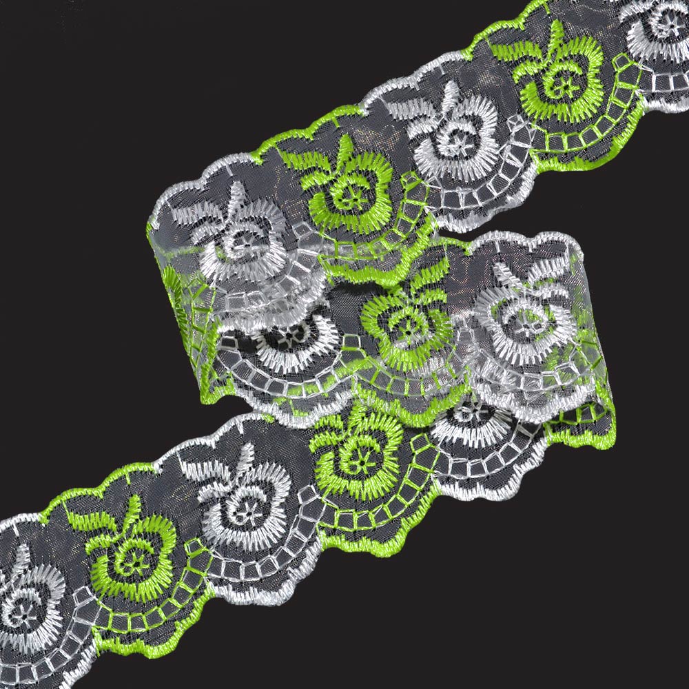 Кружево капрон двухцветное 40мм салатово-белое купить в розницу и оптом