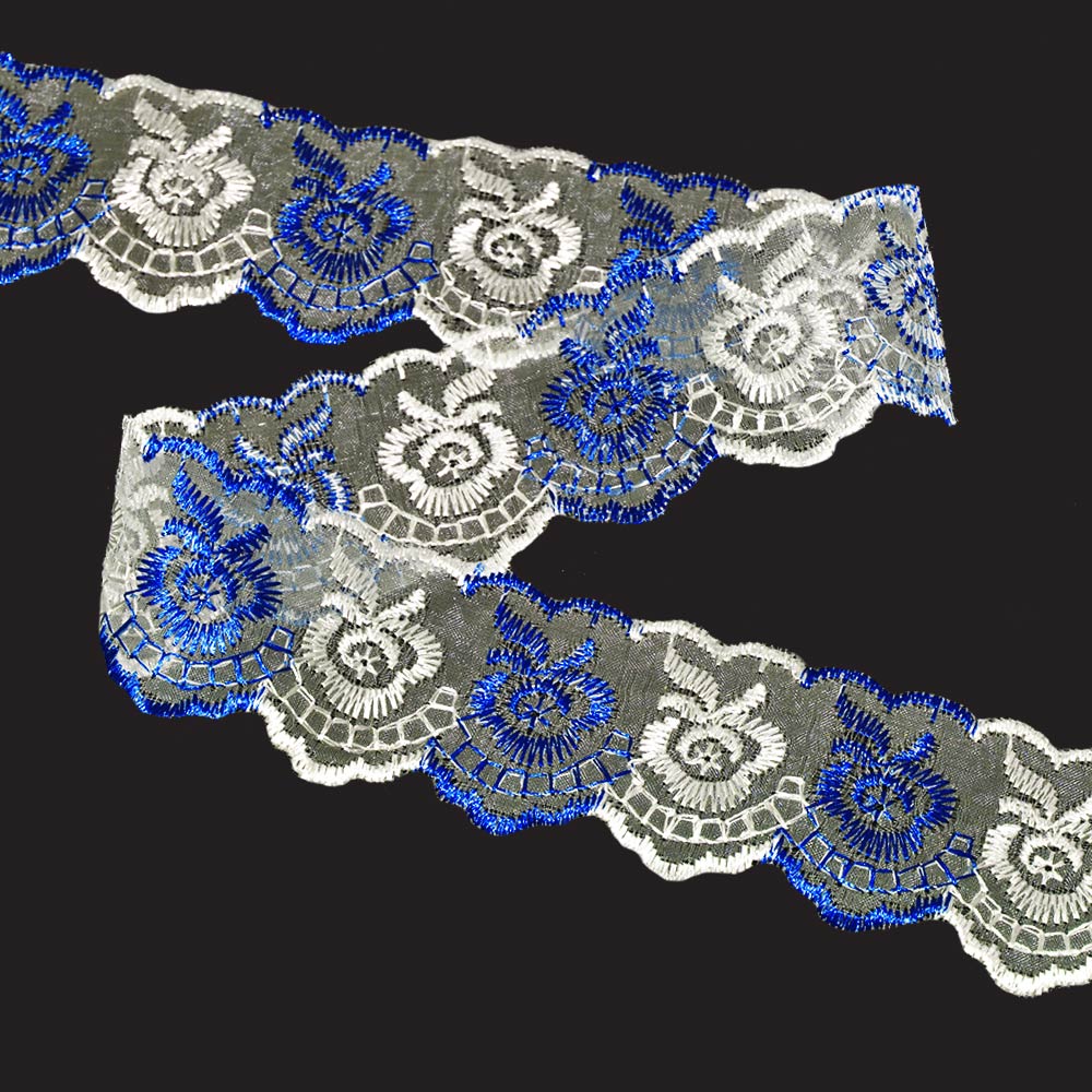 Кружево капрон двухцветное 40мм сине-белое. Страна производитель: Китай.