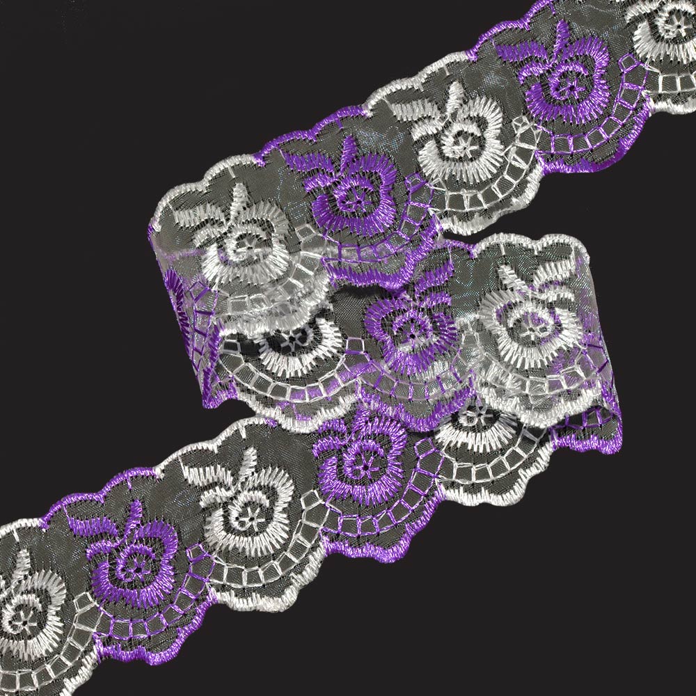 Кружево капрон двухцветное 40мм сиренево-белое купить в розницу и оптом