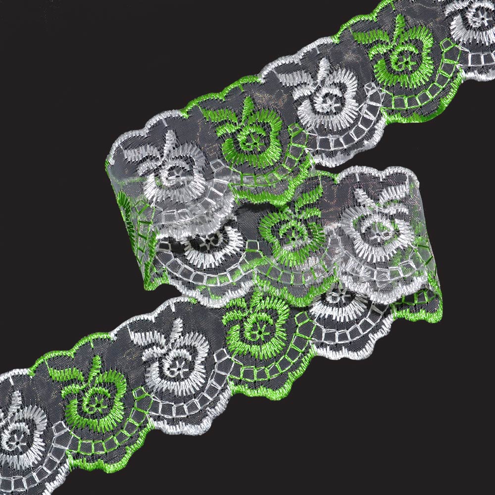 Кружево капрон двухцветное 40мм зелено-белое. Страна производитель: Китай.