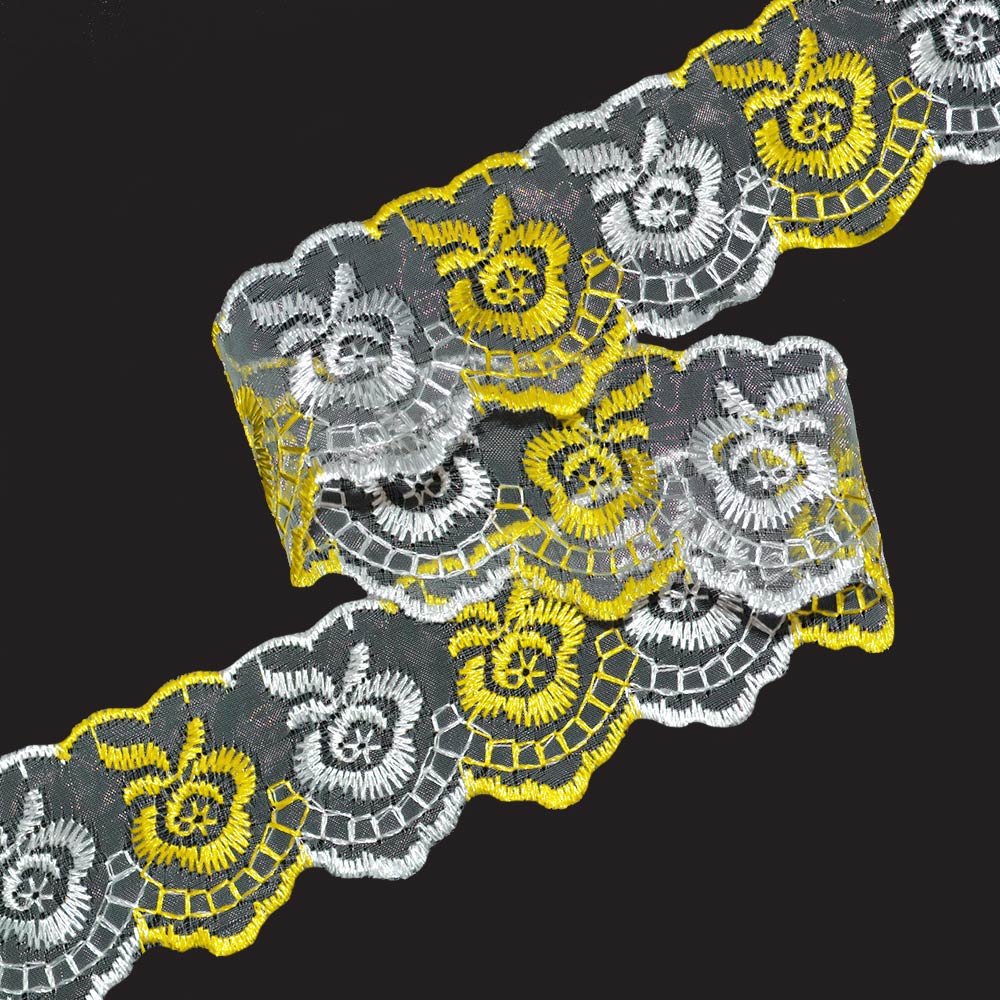 Кружево капрон двухцветное 40мм желто-белое. Страна производитель: Китай.