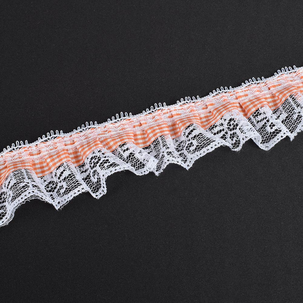 Кружево рюш с лентой в клетку 50мм оранжевое с белым. Страна производитель: Китай.