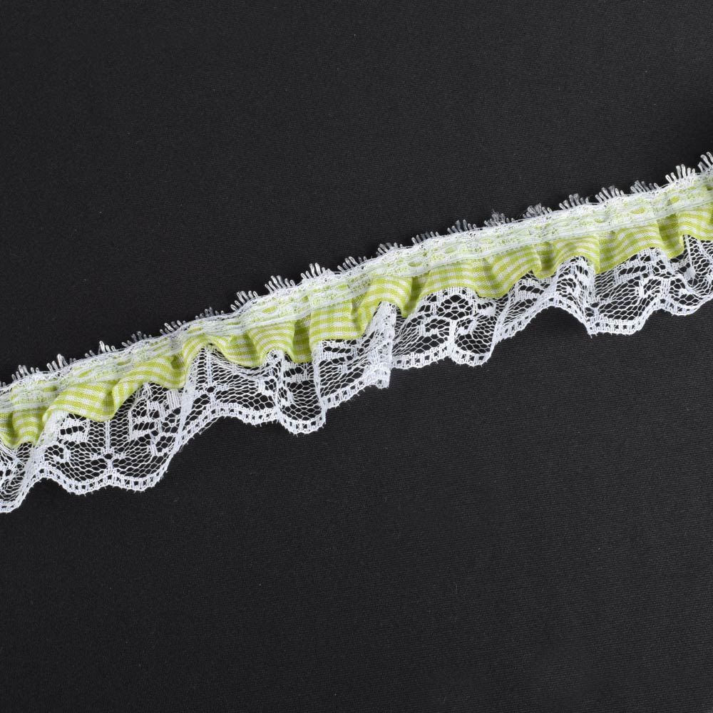 Кружево рюш с лентой в клетку 50мм салатовое с белым. Страна производитель: Китай.