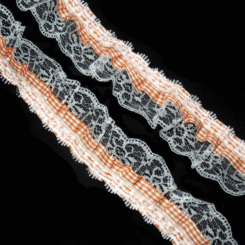 Кружево рюш с лентой в клетку 50мм терракотовое с белым купить в розницу и оптом