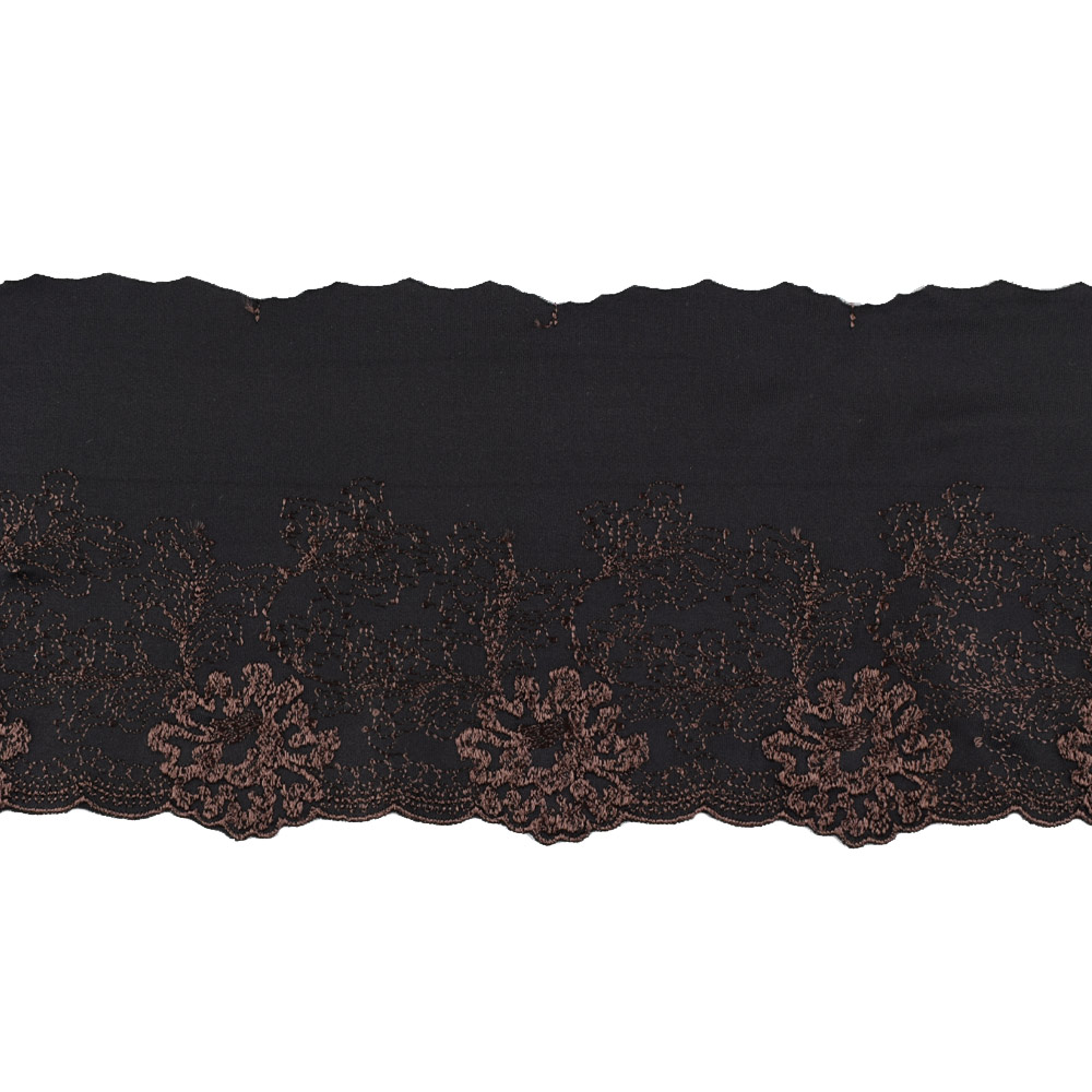 Кружево стрейч черное с коричневыми цветами, ш.13см, 1-стор. Страна производитель: Китай.