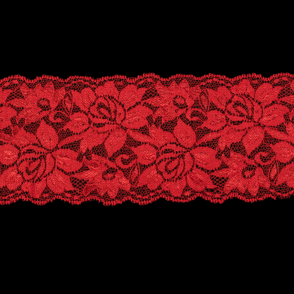 Кружево стрейч розы 100мм красное купить в розницу и оптом