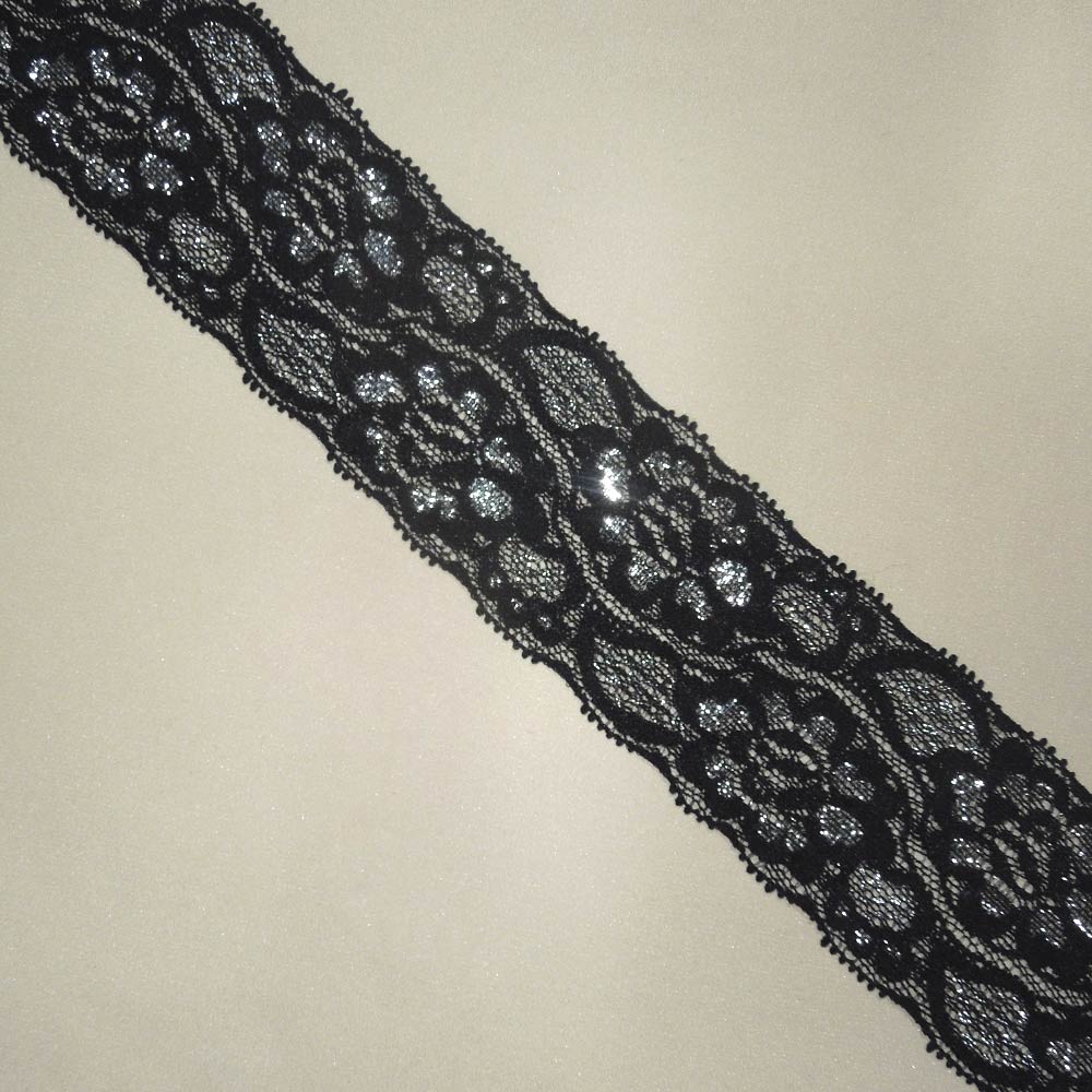 Кружево стрейч с люрексом 50мм черное с серебряным купить в розницу и оптом