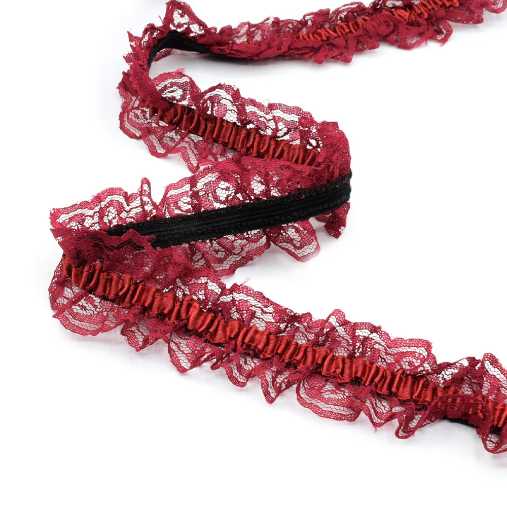 Кружево рюш на резинке с атласной лентой 40мм бордовое. Страна производитель: Китай.