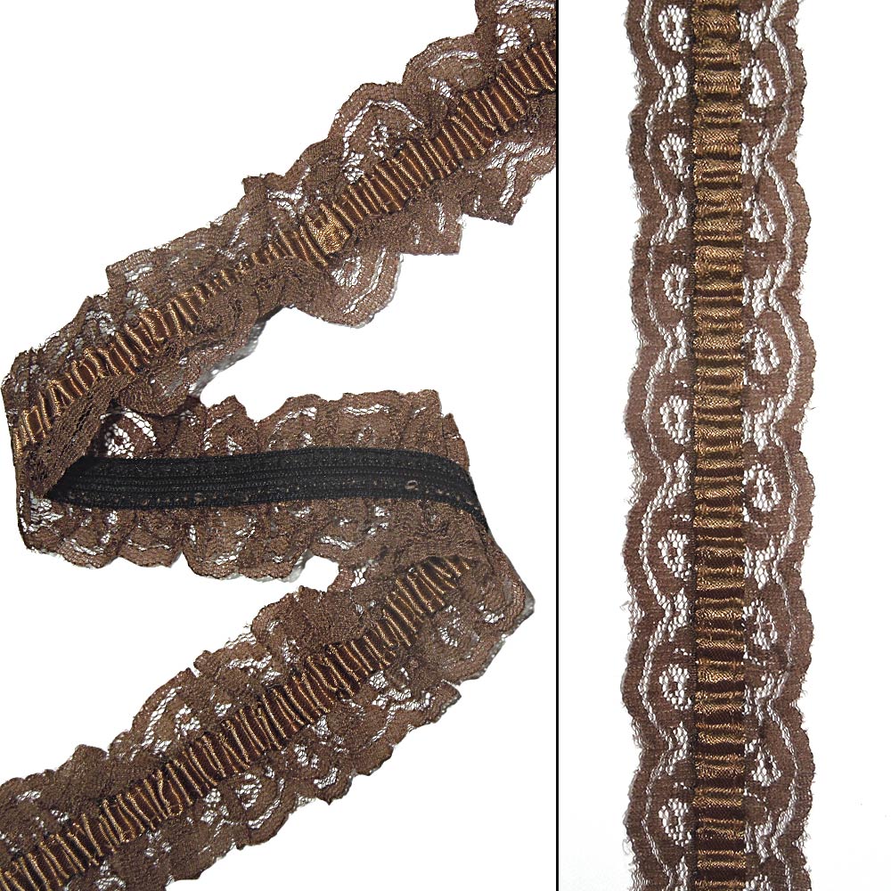 Кружево рюш на резинке с атласной лентой 40мм коричневое. Страна производитель: Китай.