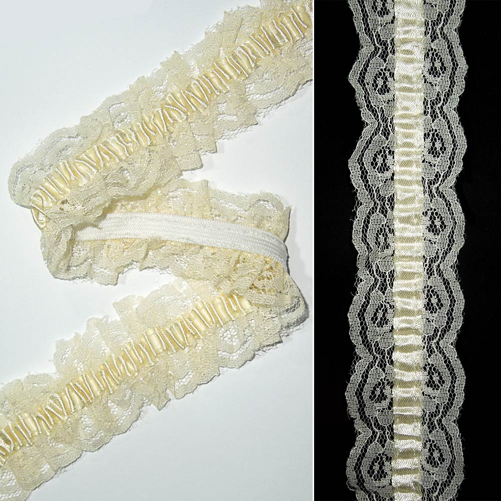 Кружево рюш на резинке с атласной лентой 40мм кремовое купить в розницу и оптом