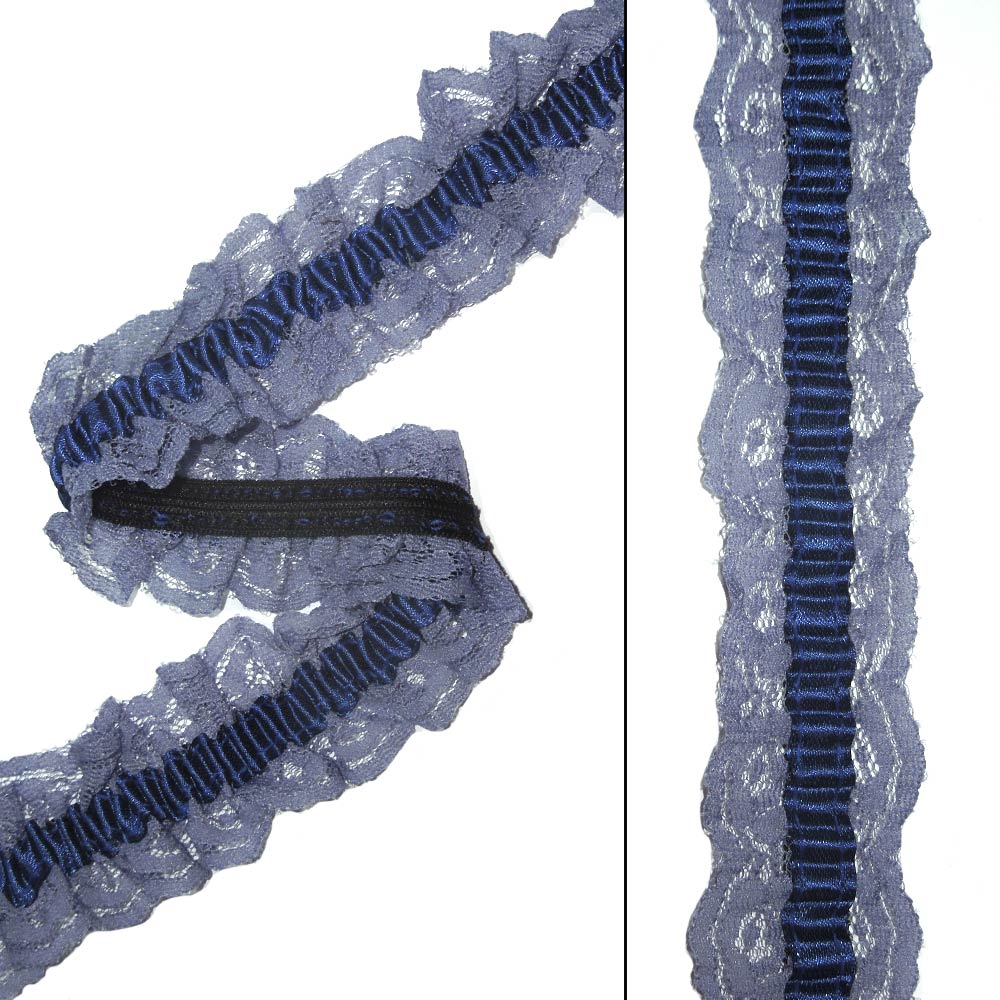 Кружево рюш на резинке с атласной лентой 40мм сиреневое. Страна производитель: Китай.