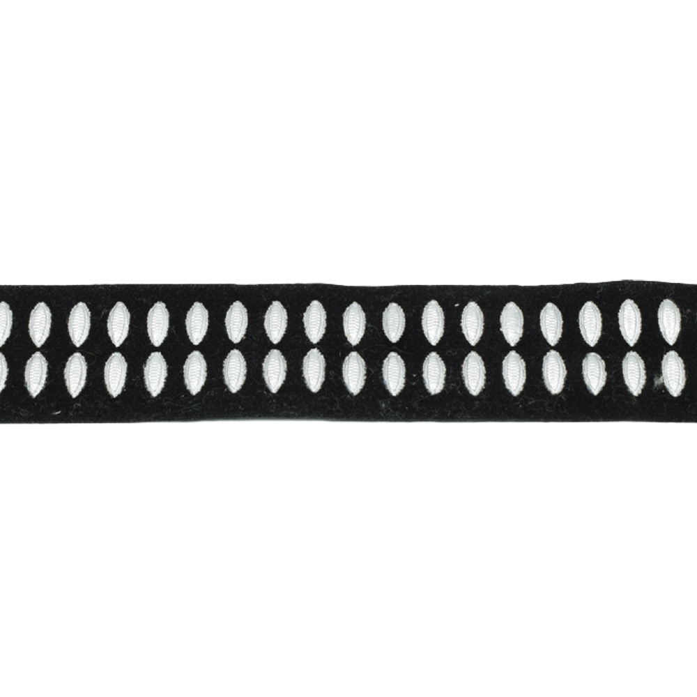 Лента черная с серебристыми овалами ш.2,5 см купить в розницу и оптом