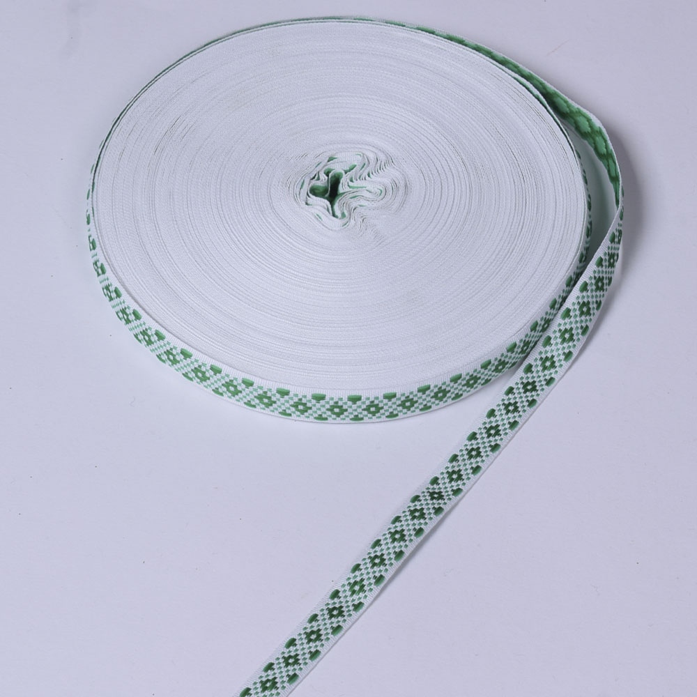 Лента отделочная белая с орнаментом зеленым 15мм 05В21Г27/1 купить в розницу и оптом