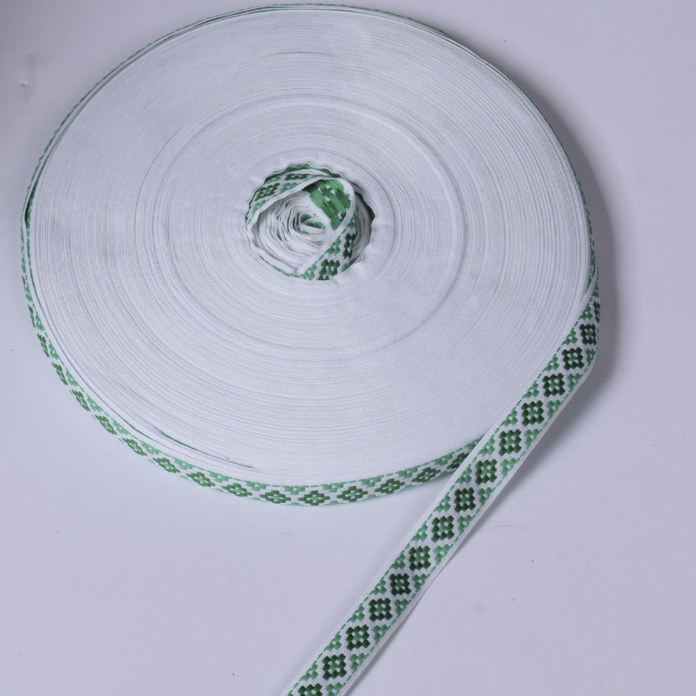 Лента отделочная белая с орнаментом зеленым 15мм 13В19Г27. Страна производитель: Украина. Отделочная тесьма с жаккардовым орнаментом используется для украшения одежды, декора элементов, отделки сумок, игрушек, различных аксессуаров в фольклорном стиле.