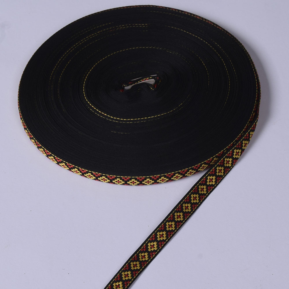 Лента отделочная черная с орнаментом желтым 15мм 13В19Г27. Страна производитель: Украина. Отделочная тесьма с жаккардовым орнаментом используется для украшения одежды, декора элементов, отделки сумок, игрушек, различных аксессуаров в фольклорном стиле.
