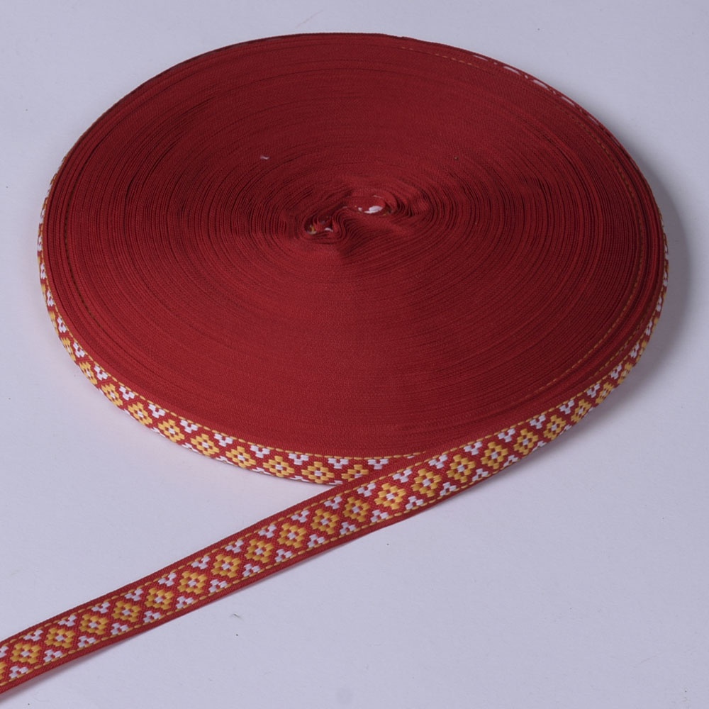 Лента отделочная красная с орнаментом желтым 15мм 13В19Г27 купить в розницу и оптом