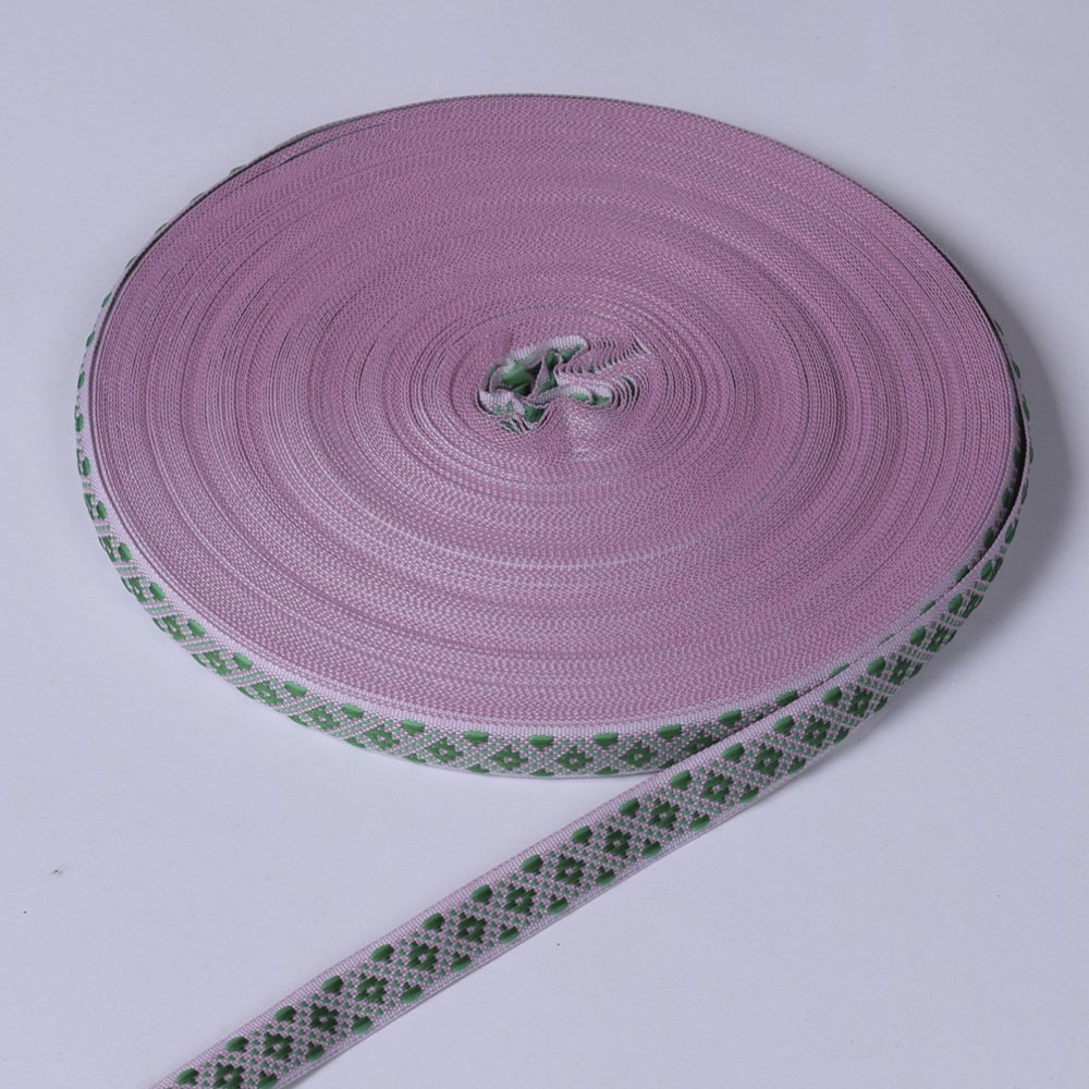 Лента отделочная сиреневая с орнаментом зеленым 15мм 05В21Г27/1 купить в розницу и оптом