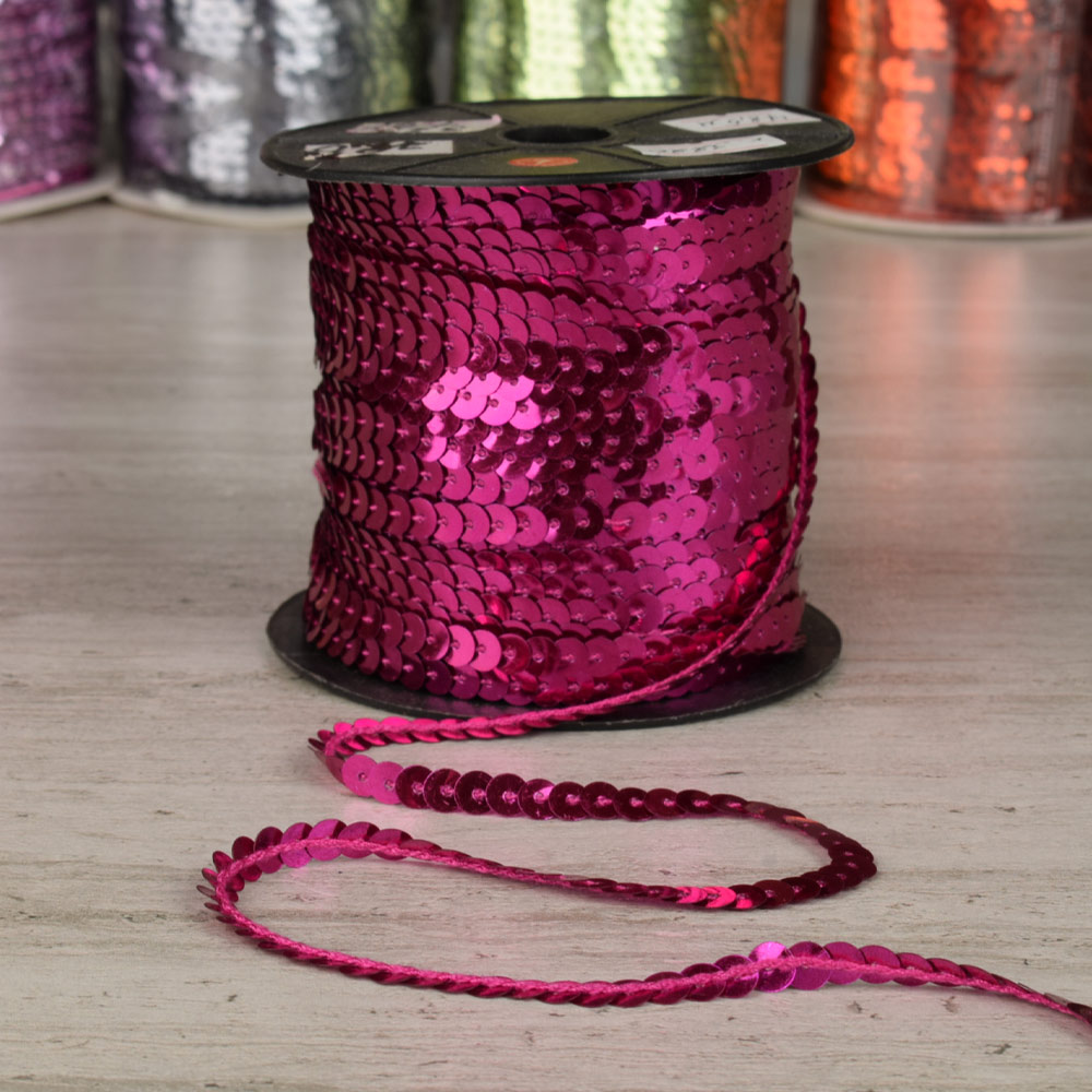 Тесьма-чешуя на нитке в один ряд 5мм малиновая купить в розницу и оптом