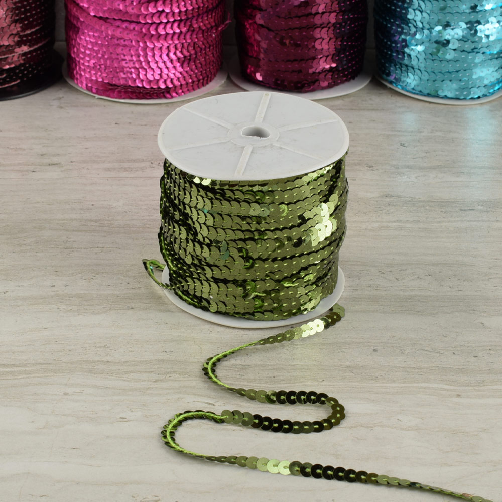 Тесьма-чешуя на нитке в один ряд 5мм оливковая. Страна производитель: Китай.