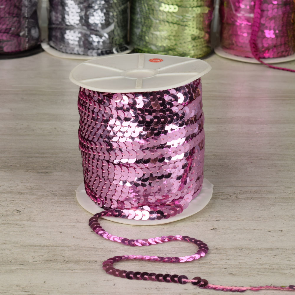 Тесьма-чешуя на нитке в один ряд 5мм розовая. Страна производитель: Китай.