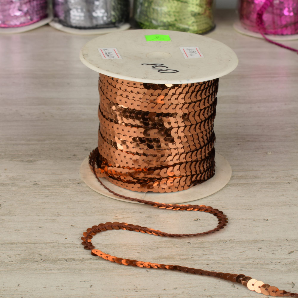 Тесьма-чешуя на нитке в один ряд 5мм рыже-коричневая. Страна производитель: Китай.