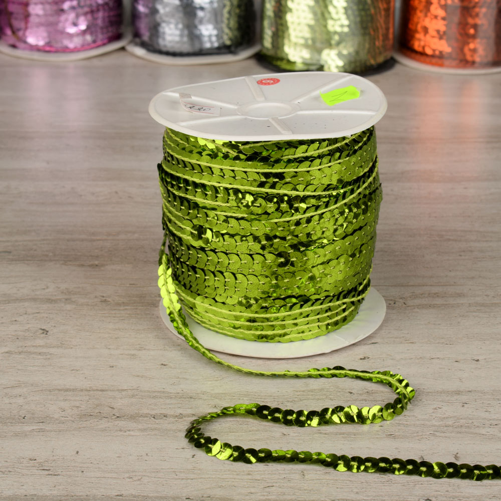 Тесьма-чешуя на нитке в один ряд 5мм салатовая купить в розницу и оптом
