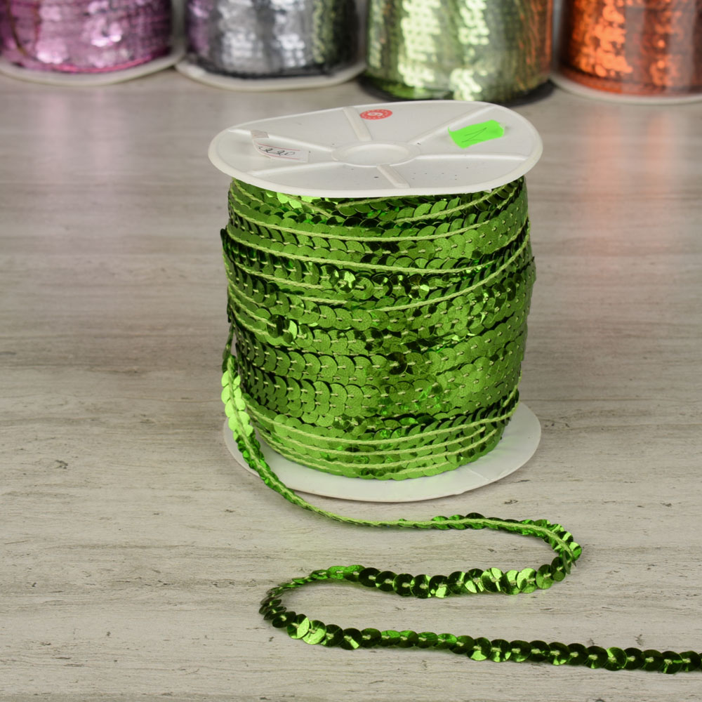 Тесьма-чешуя на нитке в один ряд 5мм салатовая купить в розницу и оптом