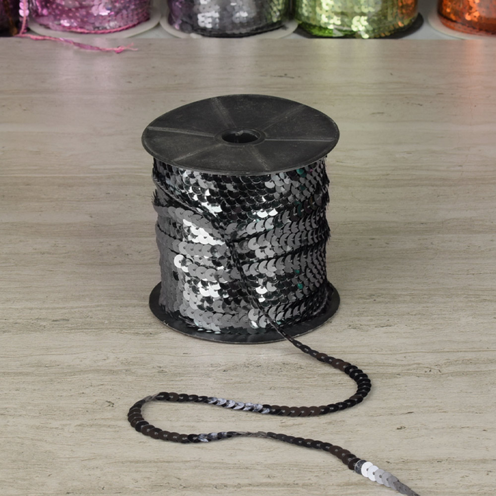 Тесьма-чешуя на нитке в один ряд 5мм серая темная. Страна производитель: Китай.