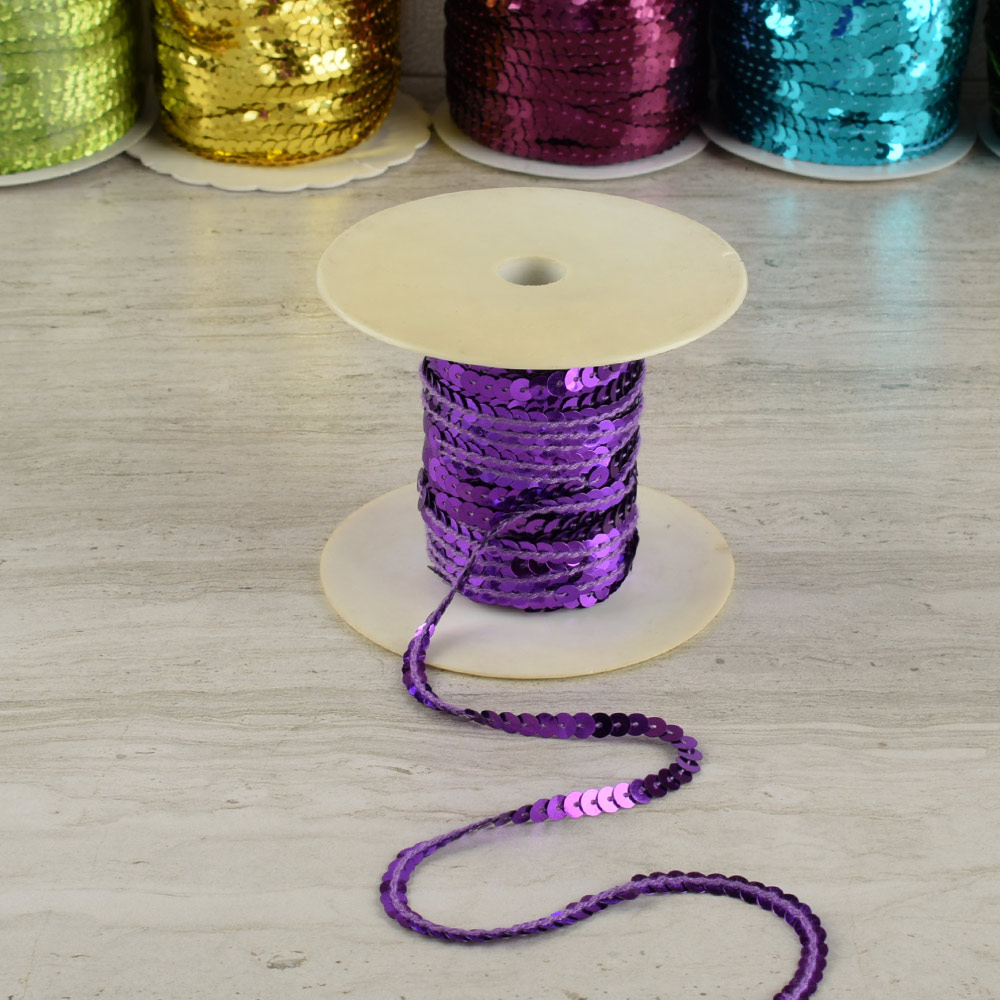 Тесьма-чешуя на нитке в один ряд 5мм сиреневая темная купить в розницу и оптом