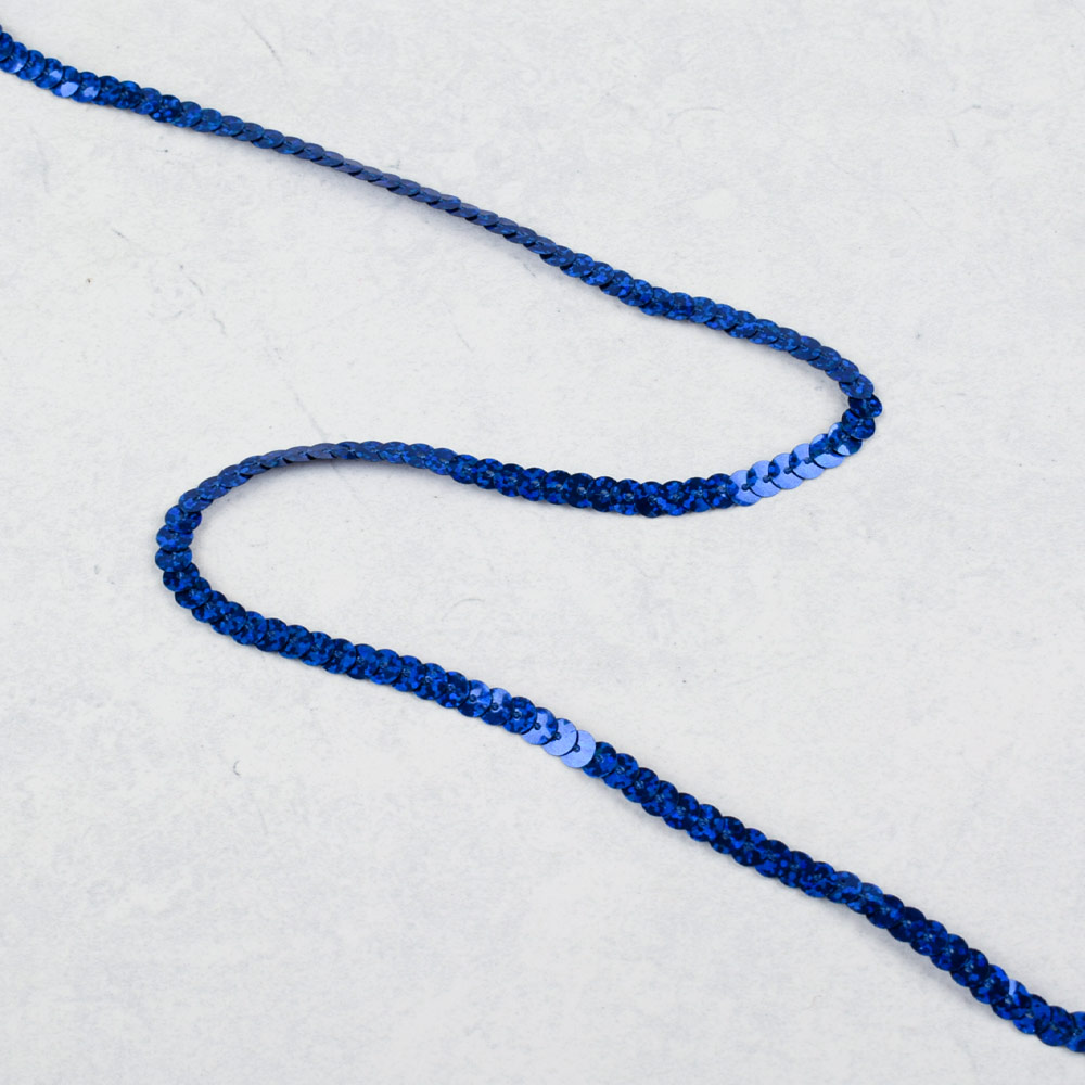 Тесьма-чешуя в один ряд на нитке 3мм синяя электрик купить в розницу и оптом