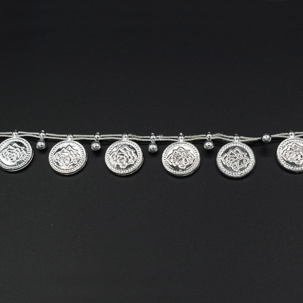 Тесьма пластик монетка плетеная золотистая, серебристая. Страна производитель: Китай.