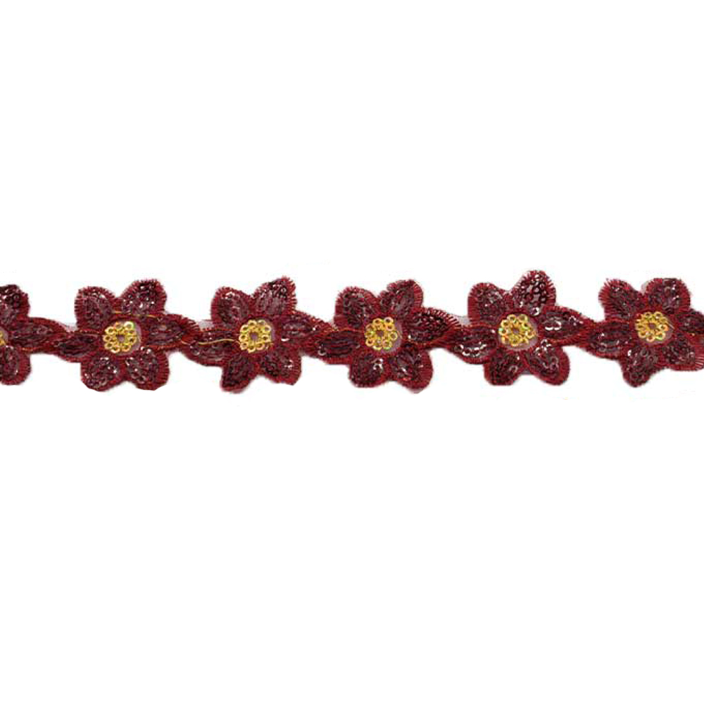 Тесьма пришивная с пайетками на капроне 35 мм цветы красно-желтая. Страна производитель: Китай.